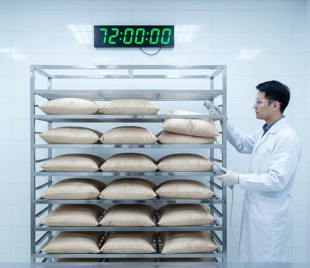Our automated lines process chemically inert fibers into uniform cores, bypassing off-gassing and delivering a near-neutral olfactory profile.