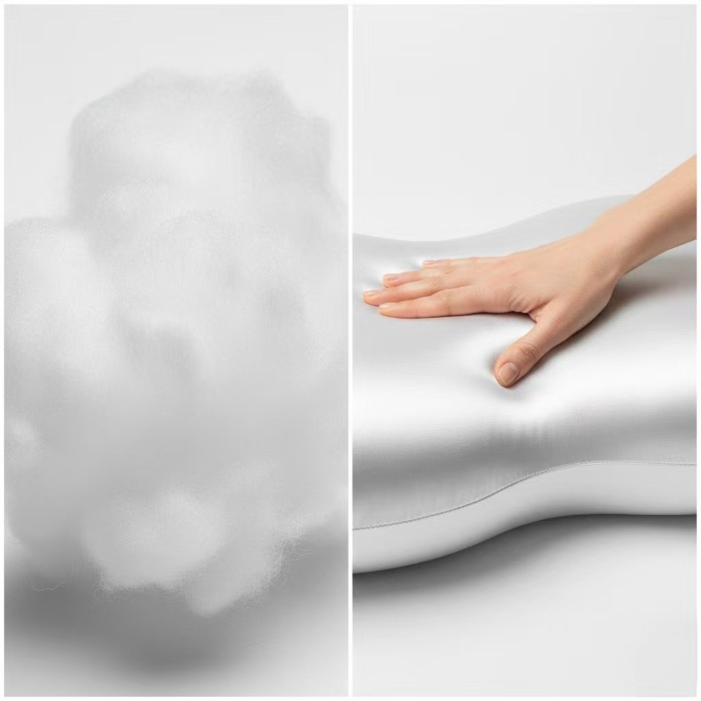 The Problem: Standard fiber pillows lose their loft quickly, causing the face to sink and the skin to fold against the fabric.